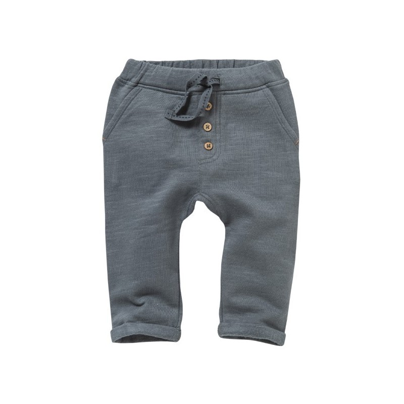 Süße Baby Sweathose von People Wear Organic mit seitlichen Taschen, Bindeband und aufgesetzten Knöpfen.