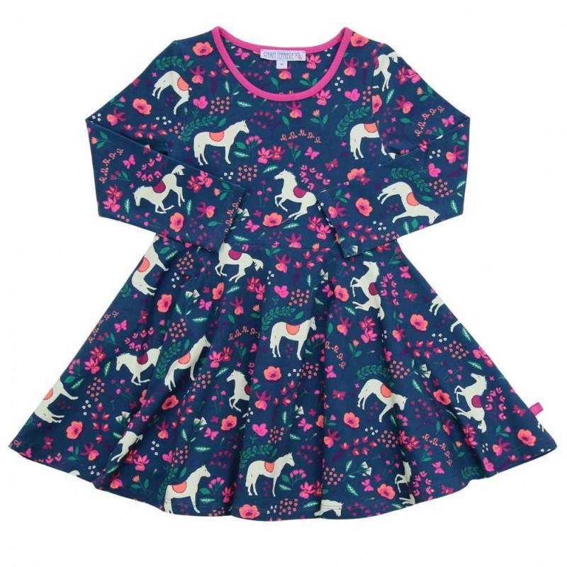 Langärmeliges Kleid mit Pferde-Allover und schwingendem Rockteil.