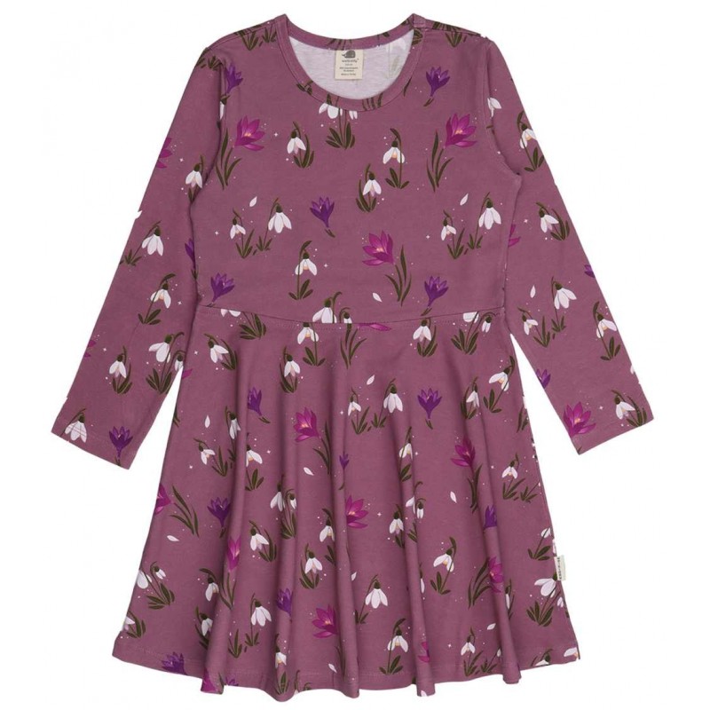 Schönes Kinder Kleid mit angesetztem Rockteil und Schneeglöckchen/Krokus-Allover.
