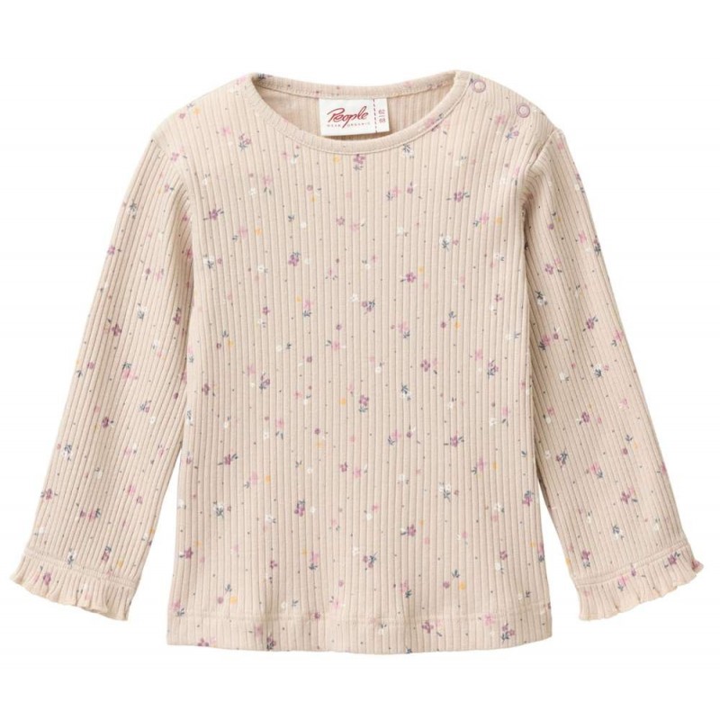 Süßes Kinder Shirt mit Blümchen-Allover aus Ripp-Jersey und mit Rüschen an den Ärmeln von People Wear Organic.