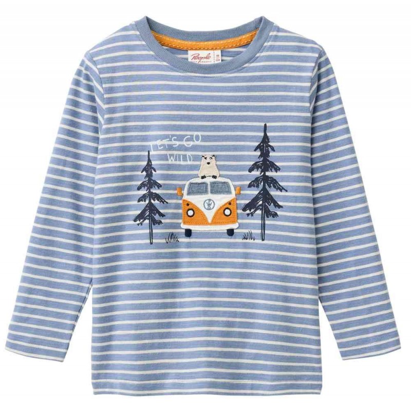 Cooles Kinder Shirt mit Campingbus-Applikation und Streifen von People Wear Organic.