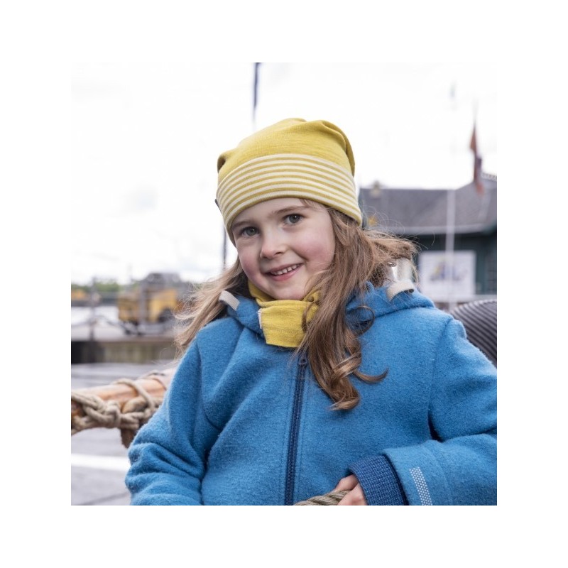 Die Mütze wird direkt in Hamburg mit viel Handwerksgeschick gefertigt und besteht aus zertifizierter Bio-Schurwolle und Seide.