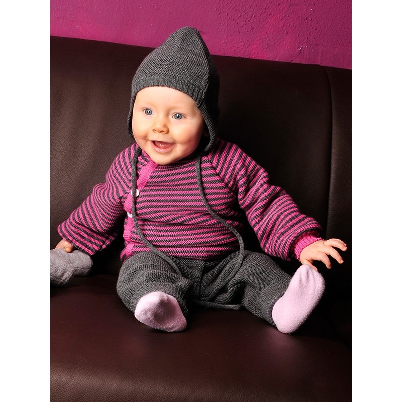 Mit dieser wunderschönen Strickmütze mit Bindeband von Reiff ist ihr Kind zu jeder Gelegenheit vor Kälte geschützt.