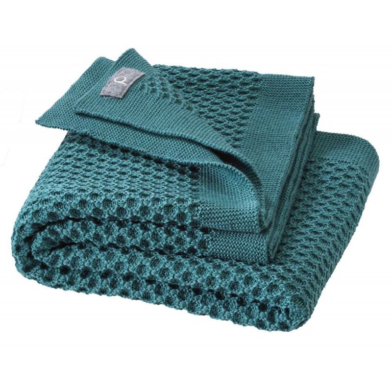 Weiche Baby Decke aus Wolle von Disana mit schönem 70er Jahre Wabenstrickmuster.