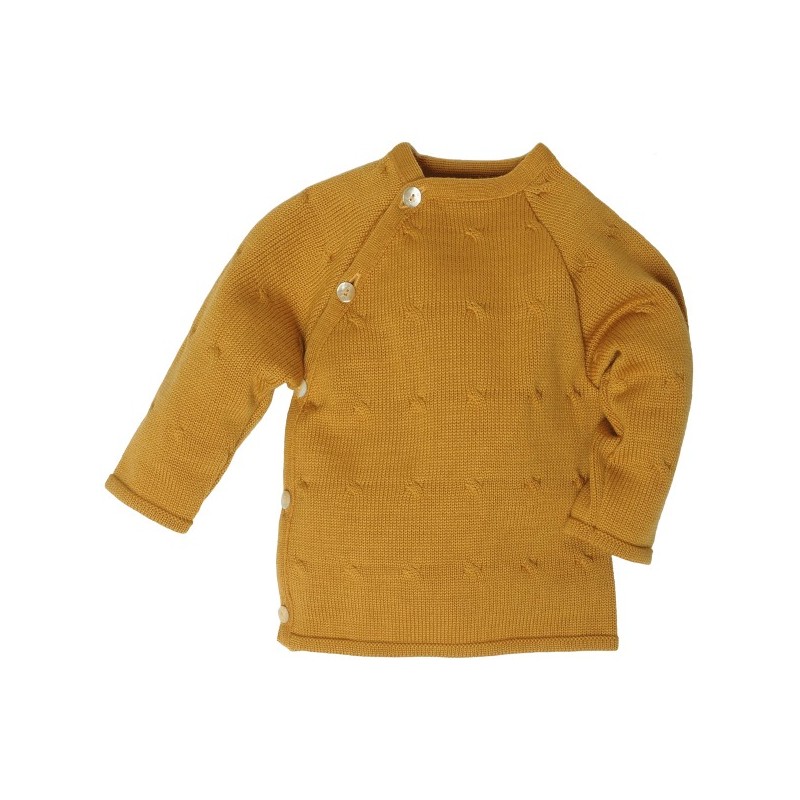 Mit diesem wunderschönen Strickpullover aus dünnem Twist von Reiff ist ihr Kind zu jeder Gelegenheit warm und niedlich angezogen. Das zart eingearbeitete Zopfmuster verbindet eine klassische Strickart mit modernem Trend. Der Pullover hat eine durchgängige Knopfleiste zum besseren An- und Ausziehen.