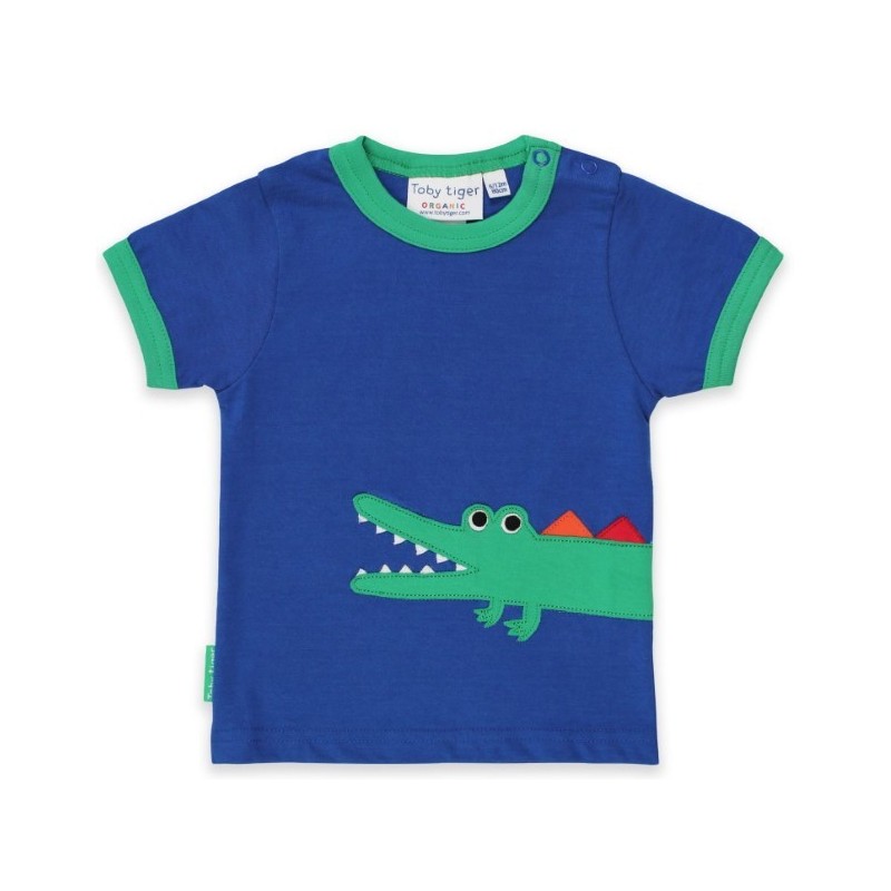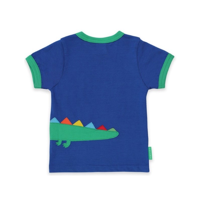 Das Shirt hat eine tolle Krokodil-Applikation und farbige Einfassbänder an den Ausschnitten.