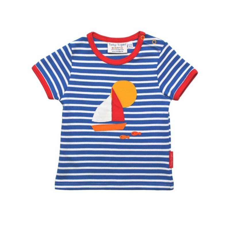 Kunterbuntes Shirt von toby tiger bringt Farbe in den Kleiderschrank Ihres Kindes. Das Shirt hat eine coole Segelboot-Applikation.