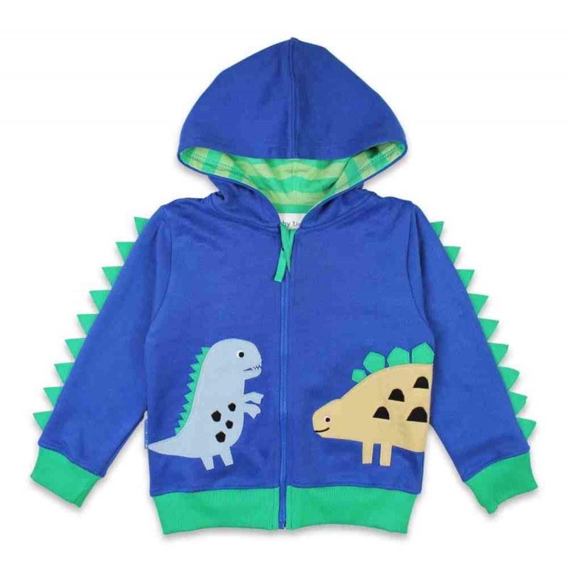 Coole Sweatjacke von toby tiger mit Dinosaurier-Applikation und Zacken an den Ärmeln.