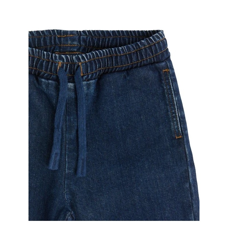 Eine super bequeme Jogg Jeans mit bequemen gerafften Bündchen und zwei seitlichen Eingriffstaschen.