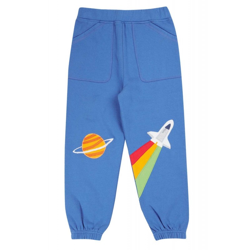 Bequeme Sweathose mit Weltraum-Applikationen und breiten Bündchen. Schöne Sweatqualität mit angerauhter Innenseite und zwei aufgesetzten Seitentaschen.