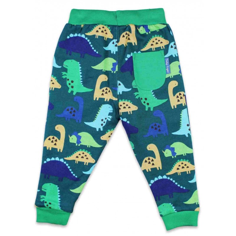 Weiche Hose von toby tiger mit Dinosaurier-Allover und breiten Bündchen. Mit aufgesetzter Tasche hinten.