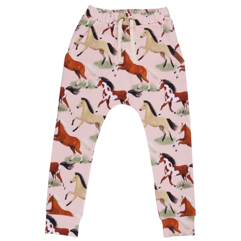 Coole Kinder Hose mit Pferde-Allover und Seitentaschen aus Sweatstoff.