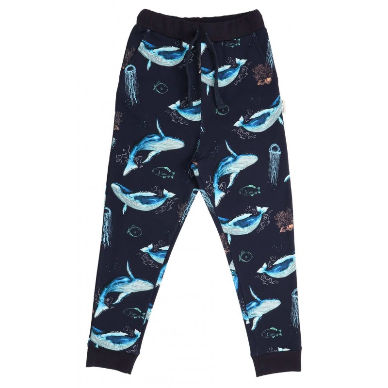 Coole Kinder Hose mit Wal-Allover und Seitentaschen aus Sweatstoff.