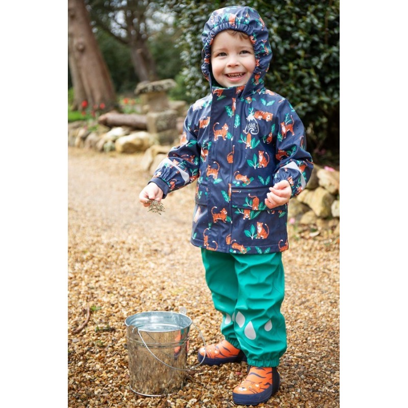 Gefütterte Regenjacke von frugi. Wasserabweisend. Fluorkohlenstoff- und PFC-frei.