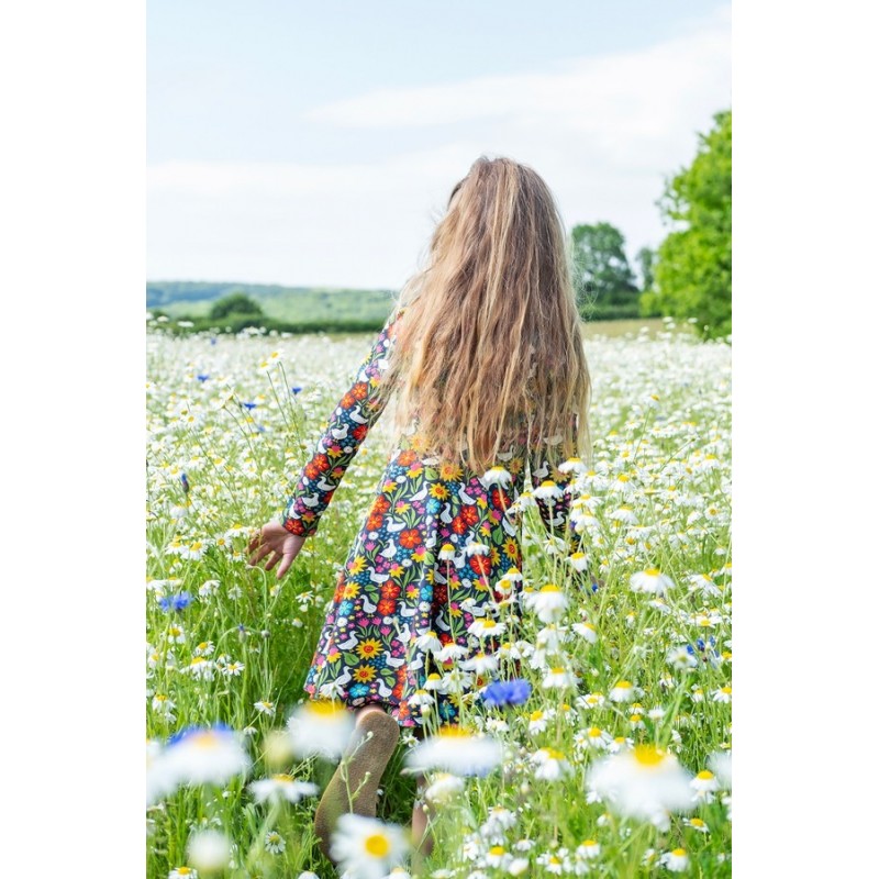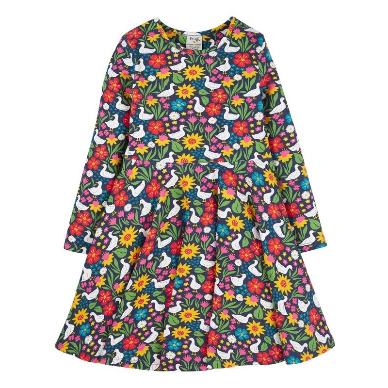 Schönes schwingendes Skaterkleid mit niedlichem Enten-Wiesen-Allover.