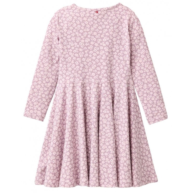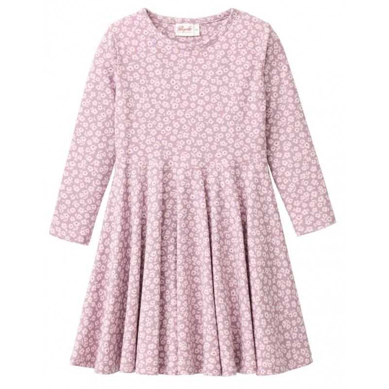 Süßes knielanges Kinderkleid aus Jersey-Stoff mit angesetztem Tellerrock und Veilchen-Allover.