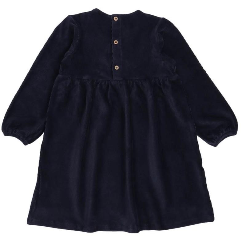 Niedliches Kleid aus weichem Babycord (kleiner Cord) mit toller Blumen-Stickerei. Hinten mit Holzknöpfen zu Öffnen bzw. Schließen.