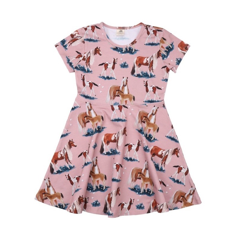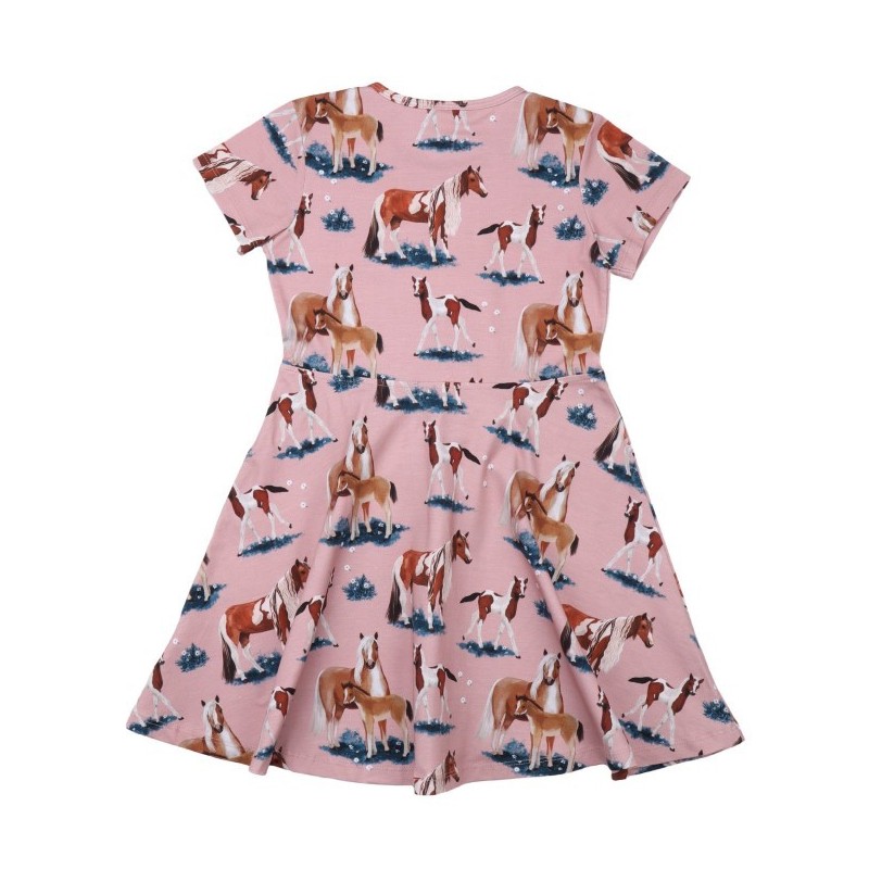 Luftiges Kinder Kleid mit Pferde-Allover aus Jersey.