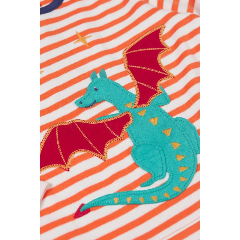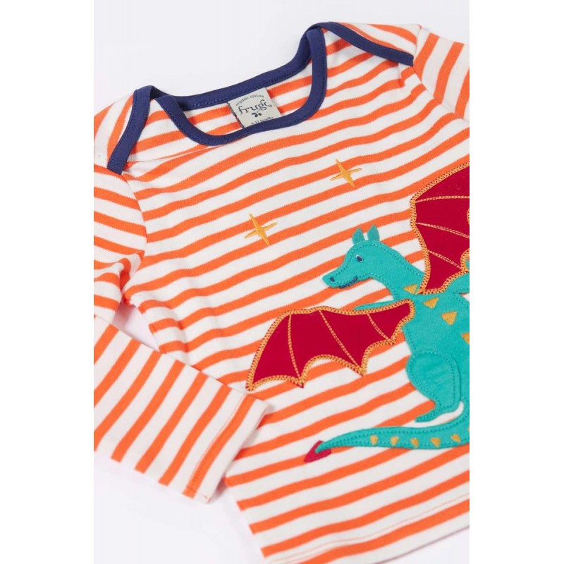 Süßes Langarmshirt mit Drachen-Applikation und Streifen.
