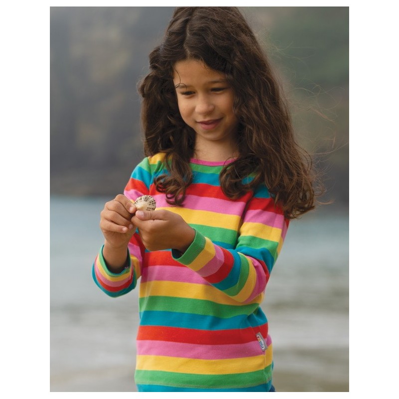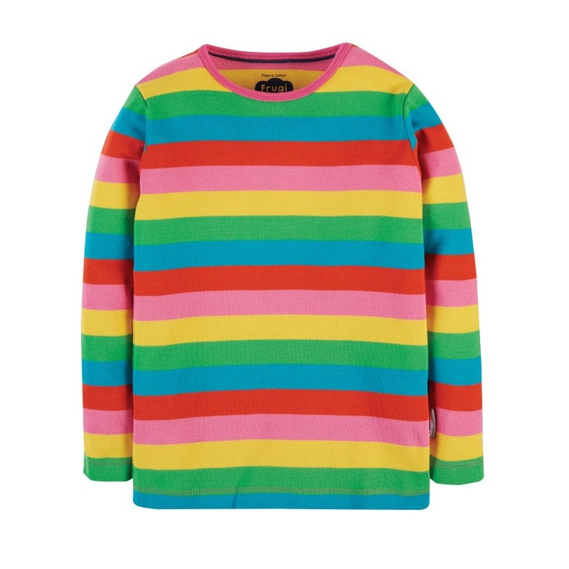 Süßes geringeltes Shirt in Regenbogen-Farben.