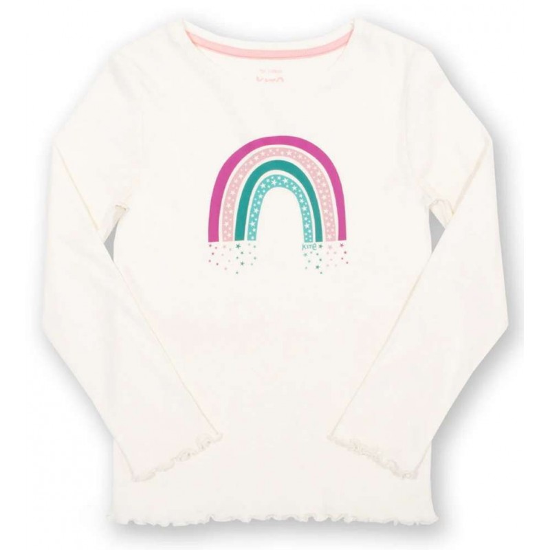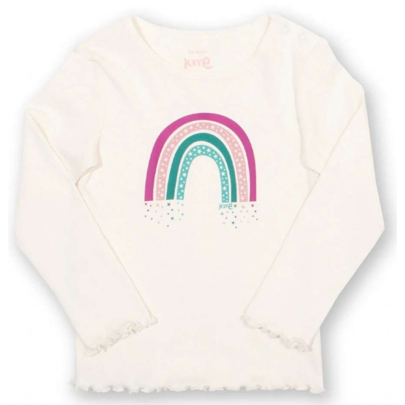 Süßes Langarmshirt mit Regenbogen-Druck und Rollsäumen. Bis inklusive Größe 98 Druckknöpfe am Halsausschnitt.