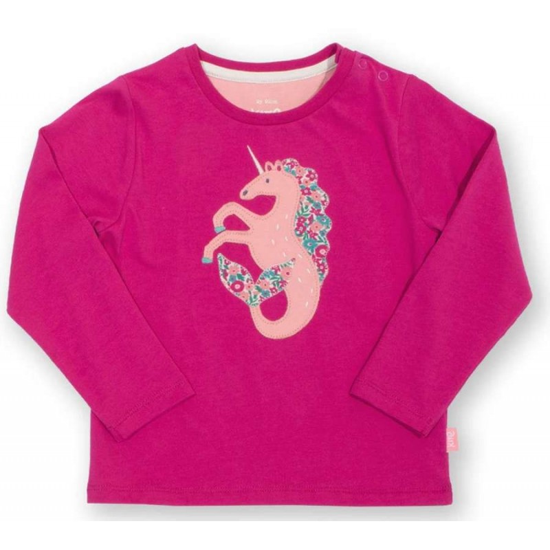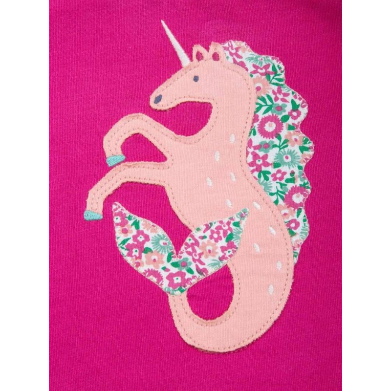 Süßes Langarmshirt mit Seepferdchen-Einhorn-Applikation. Bis inklusive Größe 98 Druckknöpfe am Halsausschnitt.