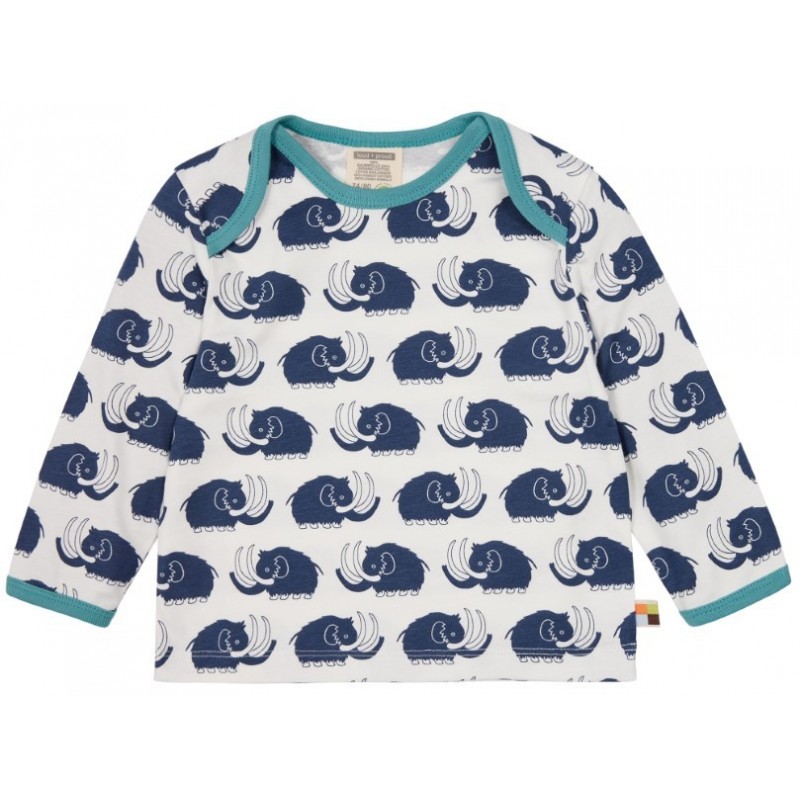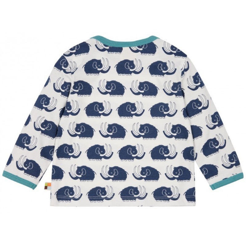 Das Shirt ist mit einem coolem Mammut-Allover verziert und die Kanten sind mit einem kontrastfarbigen Einfassband abgesetzt.