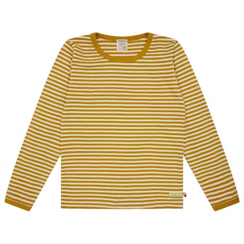 Schönes Langarmshirt mit Streifen von loud+proud. Bis Größe 86/92 mit verdeckten Druckknöpfen am Halsausschnitt.
