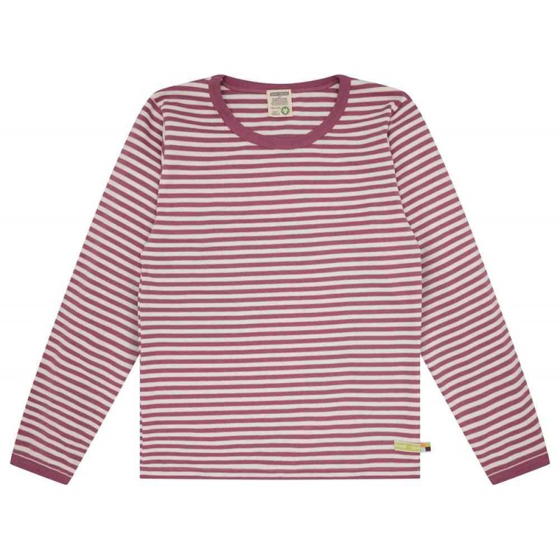Schönes Langarmshirt mit Streifen von loud+proud. Bis Größe 86/92 mit verdeckten Druckknöpfen am Halsausschnitt.