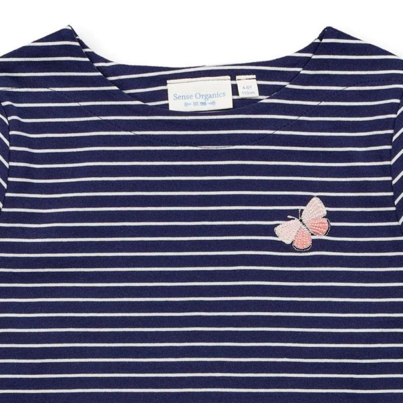 Schönes Shirt mit kleiner Schmetterlings-Stickerei und Streifen von Sense Organics.