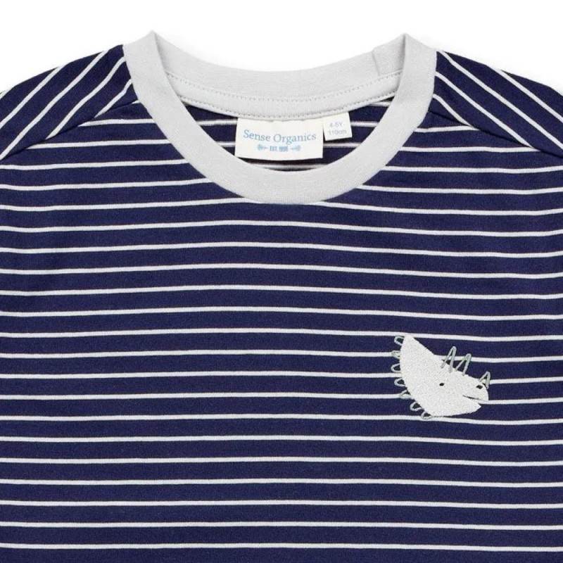Cooles Shirt mit kleiner Dinosaurier-Stickerei und Streifen von Sense Organics.