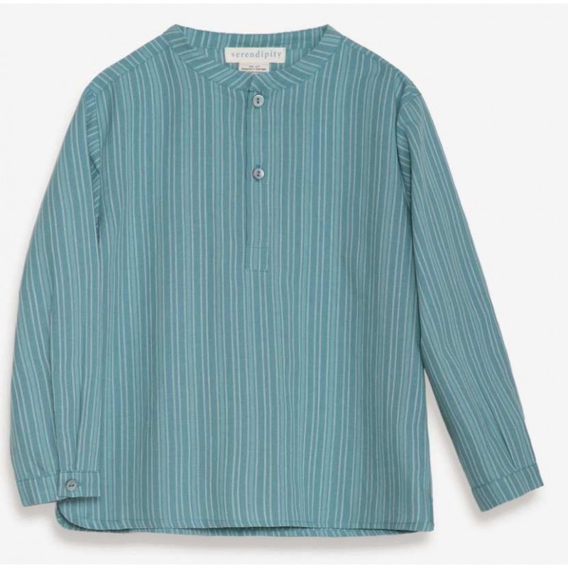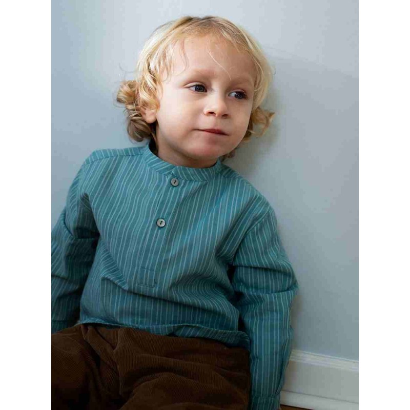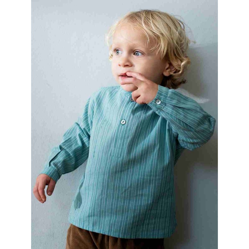Luftiges Kinderhemd mit durchgängiger Knopfleiste vorne und kleinem Stehkragen.
