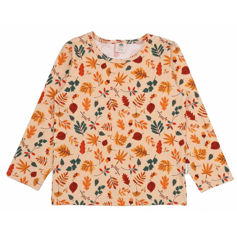 Schönes Kinder Langarmshirt mit Herbstblätter-Allover.