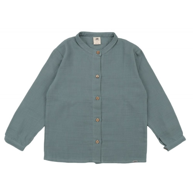 Weiches Hemd aus dickerem Musselin mit Holzknöpfen und angesetztem Kragen von Walkiddy.