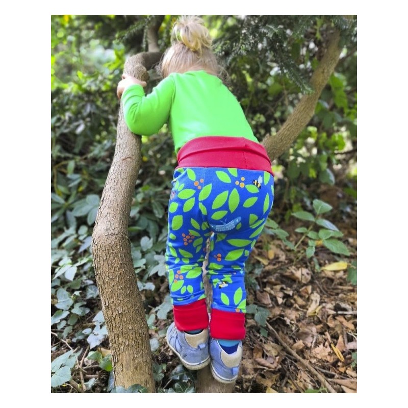Die Leggings sind dafür konzipiert, höchst praktisch und bequem zu sein. Dank eines Schrittteils kann das Baby sich frei bewegen, ohne dass Spannung entsteht (es gibt bei den größeren Größen 98-104 und 110-122 keinen Schritteil). Das extra-breite Bauchbündchen sorgt dafür, dass die Hose oben bleibt, ohne dass Druck auf den Bauch entsteht. Dazu sind die Leggings dank des Bündchens am Bauch und an den Knöcheln mitwachsend. Es ist ganz einfach: Die Bündchen am Anfang einfach zusammenklappen, und dann nach und nach entfalten! So passen die Leggings für eine sehr lange Zeit.