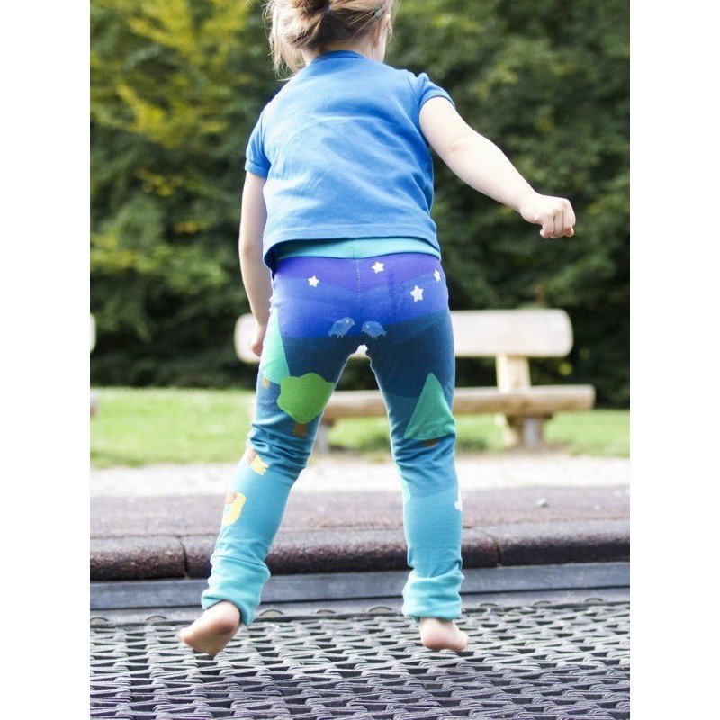 Die Leggings sind dafür konzipiert, höchst praktisch und bequem zu sein. Dank eines Schrittteils kann das Baby sich frei bewegen, ohne dass Spannung entsteht (es gibt bei den größeren Größen 98-104 und 110-122 keinen Schritteil). Das extra-breite Bauchbündchen sorgt dafür, dass die Hose oben bleibt, ohne dass Druck auf den Bauch entsteht. Dazu sind die Leggings dank des Bündchens am Bauch und an den Knöcheln mitwachsend. Es ist ganz einfach: Die Bündchen am Anfang einfach zusammenklappen, und dann nach und nach entfalten! So passen die Leggings für eine sehr lange Zeit.