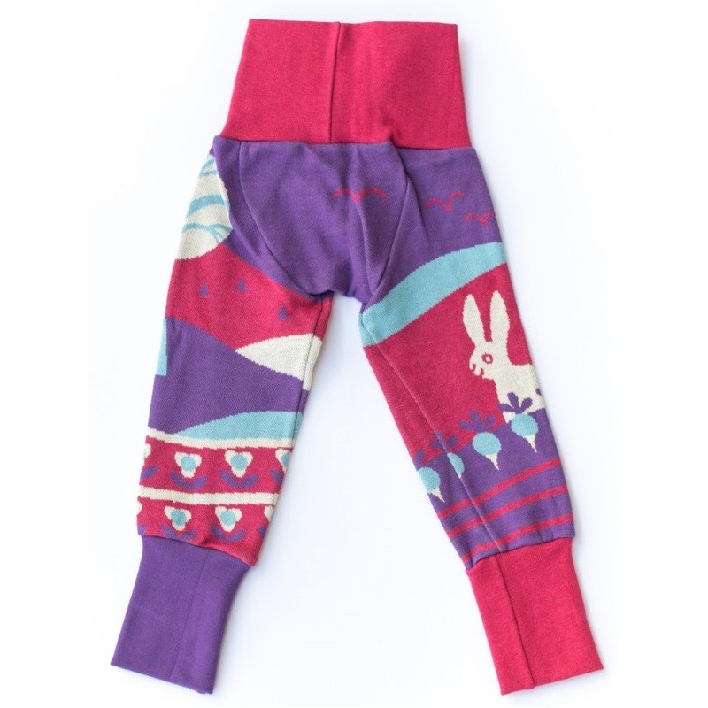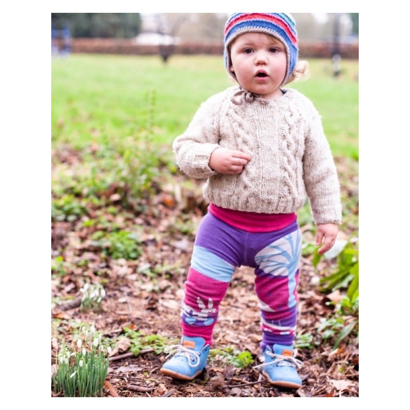 Die Leggings sind dafür konzipiert, höchst praktisch und bequem zu sein. Dank eines Schrittteils kann das Baby sich frei bewegen, ohne dass Spannung entsteht (es gibt bei den größeren Größen 98-104 und 110-122 keinen Schritteil). Das extra-breite Bauchbündchen sorgt dafür, dass die Hose oben bleibt, ohne dass Druck auf den Bauch entsteht. Dazu sind die Leggings dank des Bündchens am Bauch und an den Knöcheln mitwachsend. Es ist ganz einfach: Die Bündchen am Anfang einfach zusammenklappen, und dann nach und nach entfalten! So passen die Leggings für eine sehr lange Zeit.