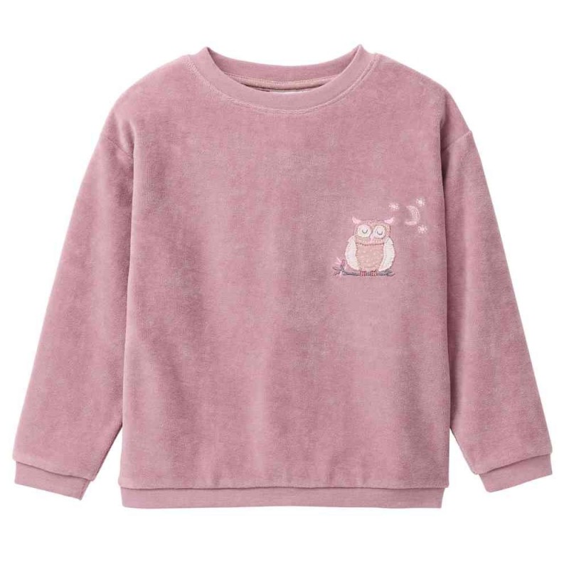 Süßer langärmeliger Kinder Schlafanzug mit kleiner Eulen-Applikation aus Nickistoff von People Wear Organic.