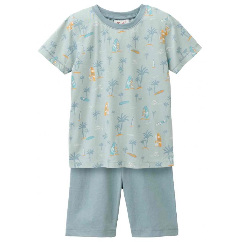 Bequemer Kinder-Schlafanzug mit Surfer-Allover-Shirt und unifarbener Hose – Nachhaltige Nachtwäsche von People Wear Organic
