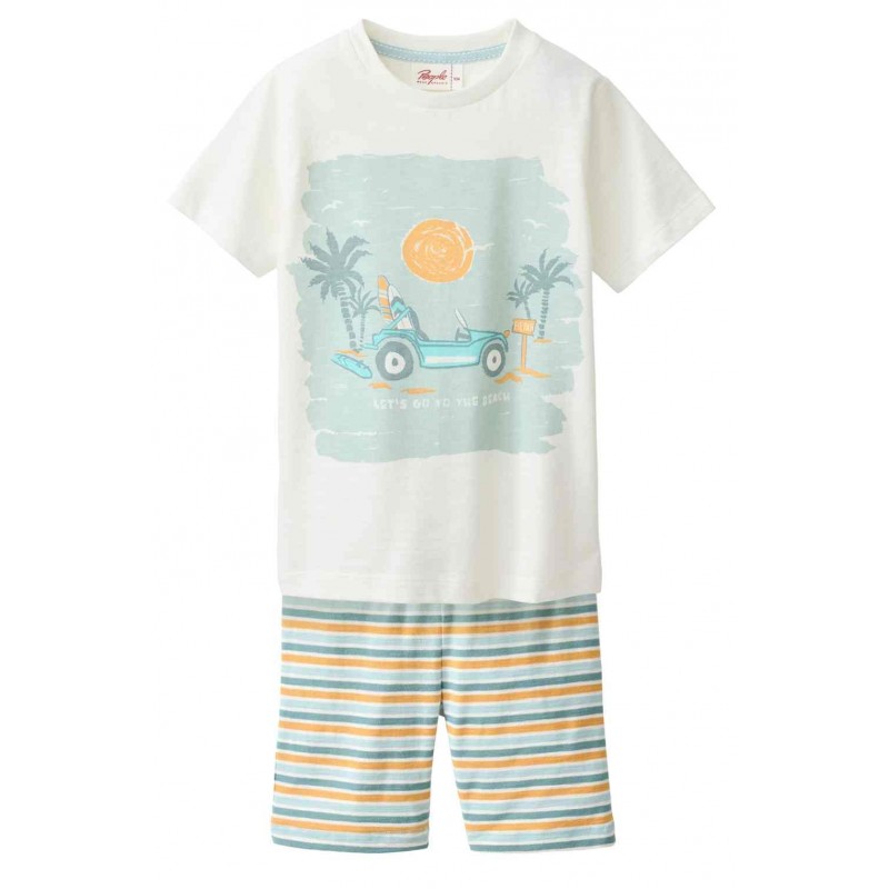 Bequemer Kinder-Schlafanzug mit Surfer-Druck-Shirt und gestreifter Hose von People Wear Organic.