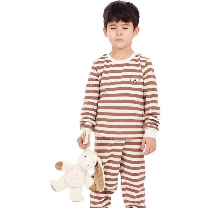Kuscheliger Schlafanzug mit Bären-Stickerei aus Frottee-Stoff von Sense Organics.