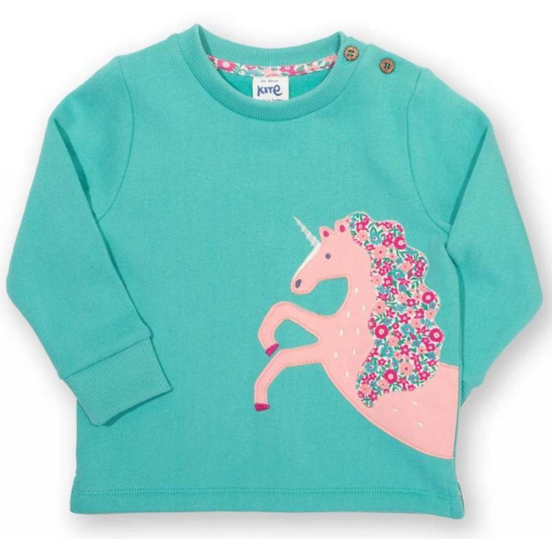 Süßes angerauhtes Sweatshirt mit Seepferdchen-Einhorn-Applikation. Bis inklusive Größe 98 Kokosnussknöpfe am Halsausschnitt.
