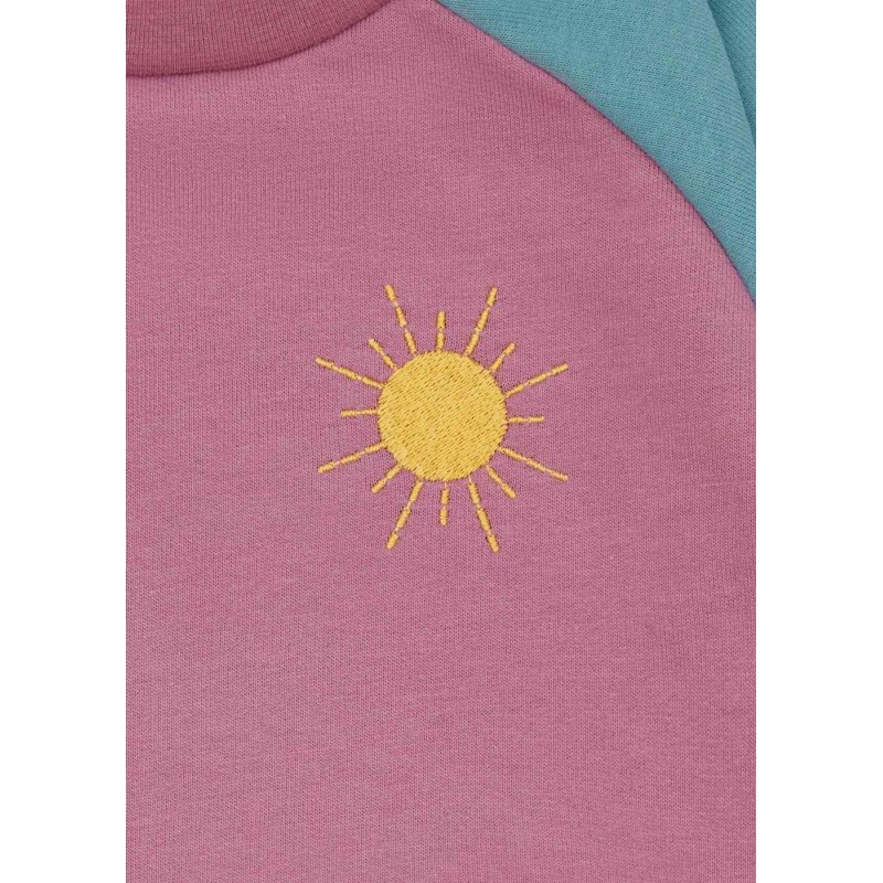 Zweifarbige Raglanärmel und liebevolle Sonnenstickerei – kindgerecht und modern
