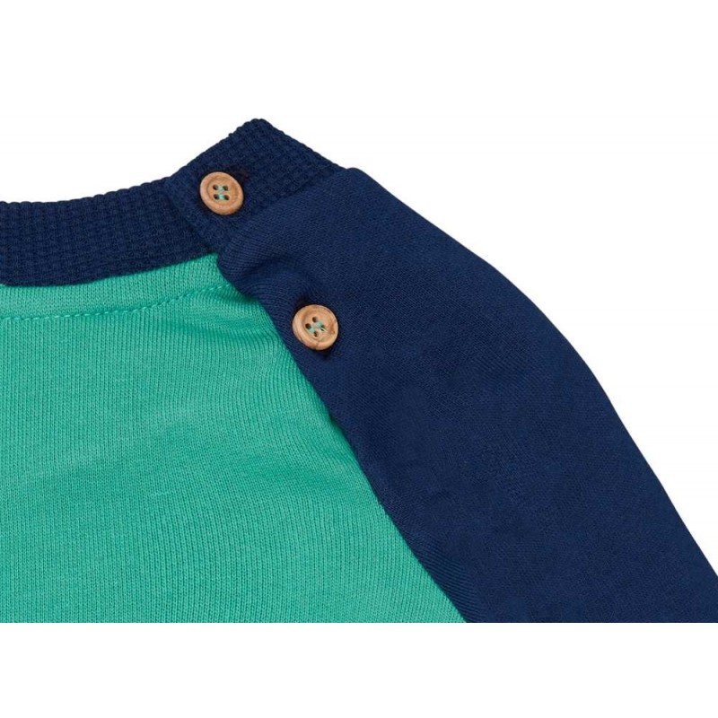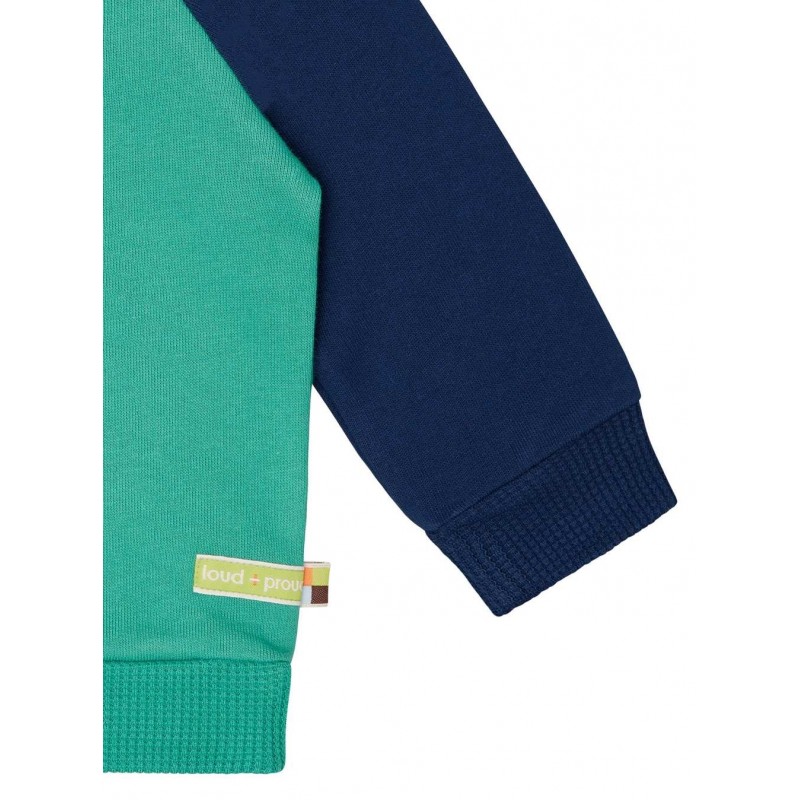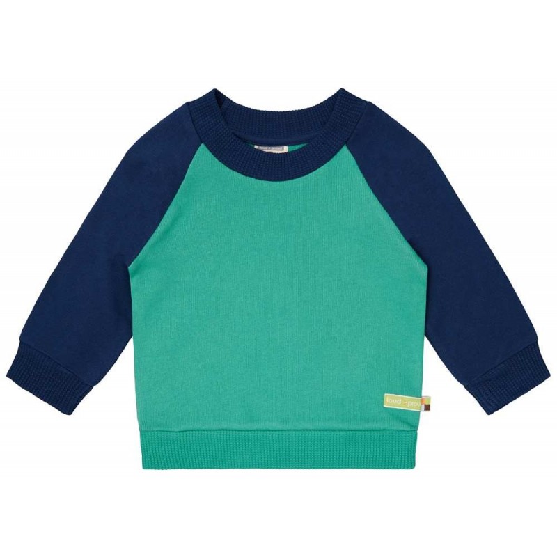 Weiches Sweatshirt mit Raglanärmeln in zwei verschiedenen Farben von loud+proud. Mit Holzknöpfen am Halsauschnitt bis (inkl.) Größe 86/92, danach ohne extra Verschluss.