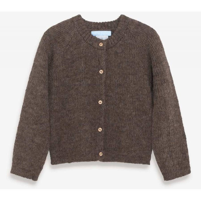 Aus 100% Baby Alpakawolle, mit Holzknöpfen und semi handgestrickt.