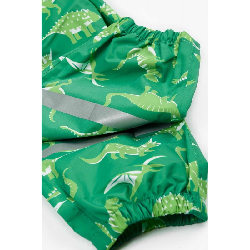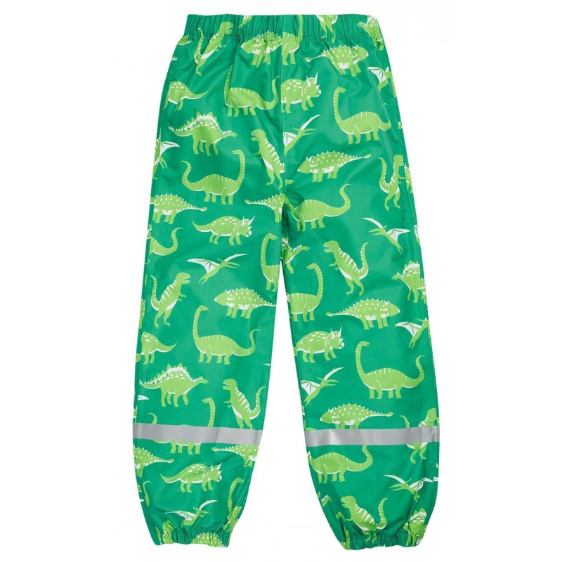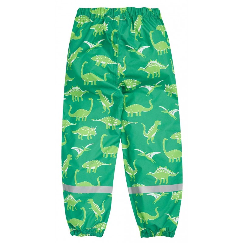 Wasserdichte Kinderhose mit reflektierenden Streifen und Dinosaurier-Allover von frugi – Nachhaltig und Funktional