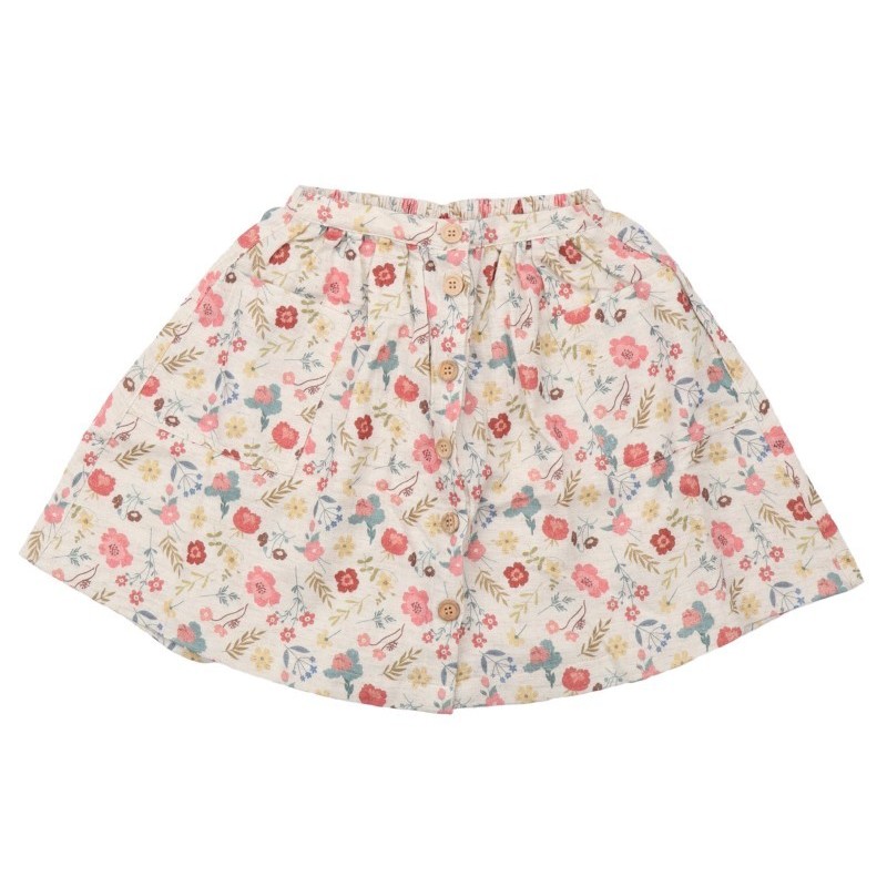 Weicher Rock aus Musselin mit durchgängiger Holzknopfleiste und zwei aufgesetzten Taschen vorne.