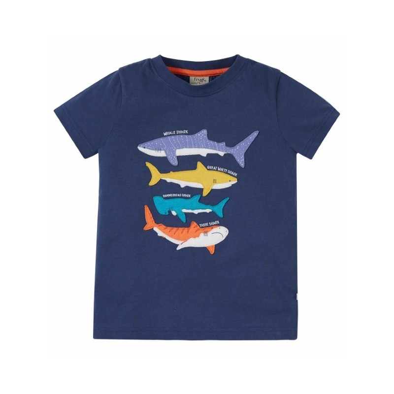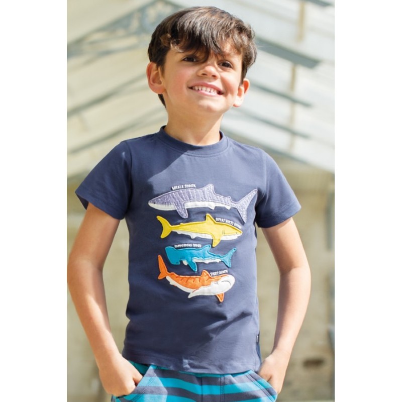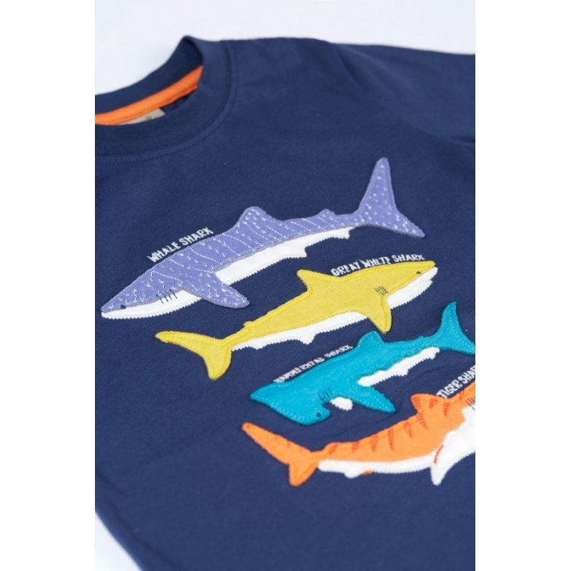 Cooles T-Shirt mit verschiedenen Hai-Applikationen.