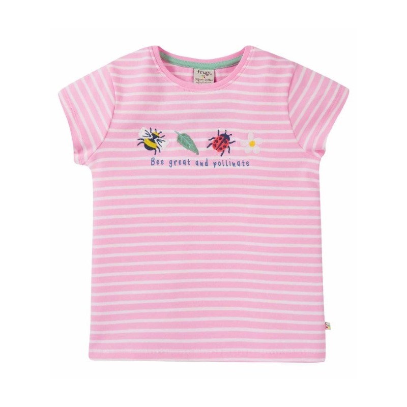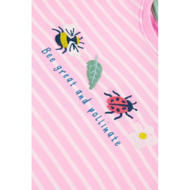 Süßes T-Shirt mit Käfer-Applikationen und Streifen.
