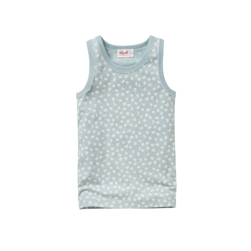 Kuscheliges Kinder Unterhemd mit Apfel-Allover und Crochet-Spitze an den Arm- und Halsausschnitten von People Wear Organic.